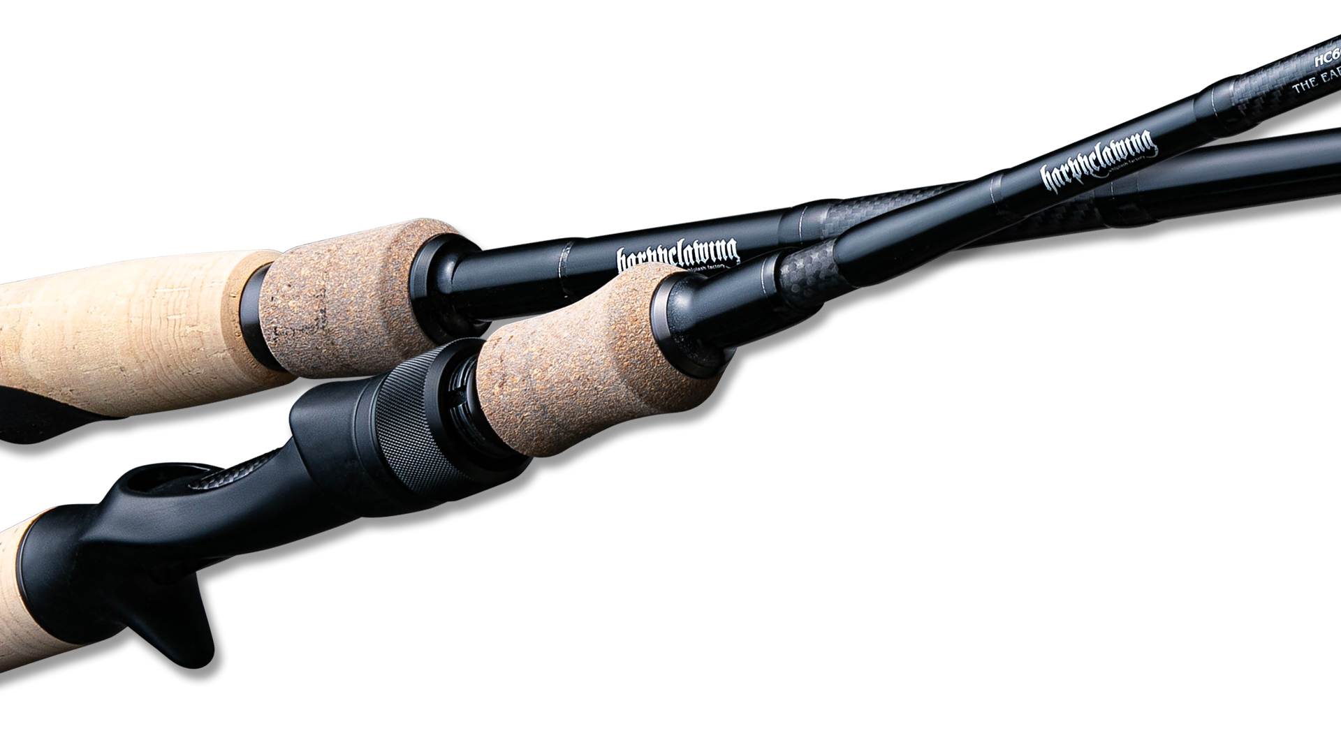 「RAW DEALER DEFIANCE」 というシリーズ名でリリースを予定していたものの、様々な要因で不可能になったモデルたちが、細部まで煮詰めなおしたセッティング変更、入念なテストを経て、陽の目を見ることになりました。新しいシリーズの名は 「HARPYCLAWING (ハーピークロウイング)」。神話に出てくるハルピュイア、南米のハーピーイーグル、そしてDr.レクター愛用で知られるナイフから命名しました。デザイン面においては、より黒を強調。過度な装飾や現代的なデザインを避け、使い続けても飽きの来ない普遍性をもたせました。ブランクスはこれまで培ってきた総合性能を維持しつつも、シャープネスを磨きアグレッションを付加。そして各パーツ類を細部に至るまでアップデート。ハイレベルなゲームを可能にする、バーサタイルロッドとして再誕しました。